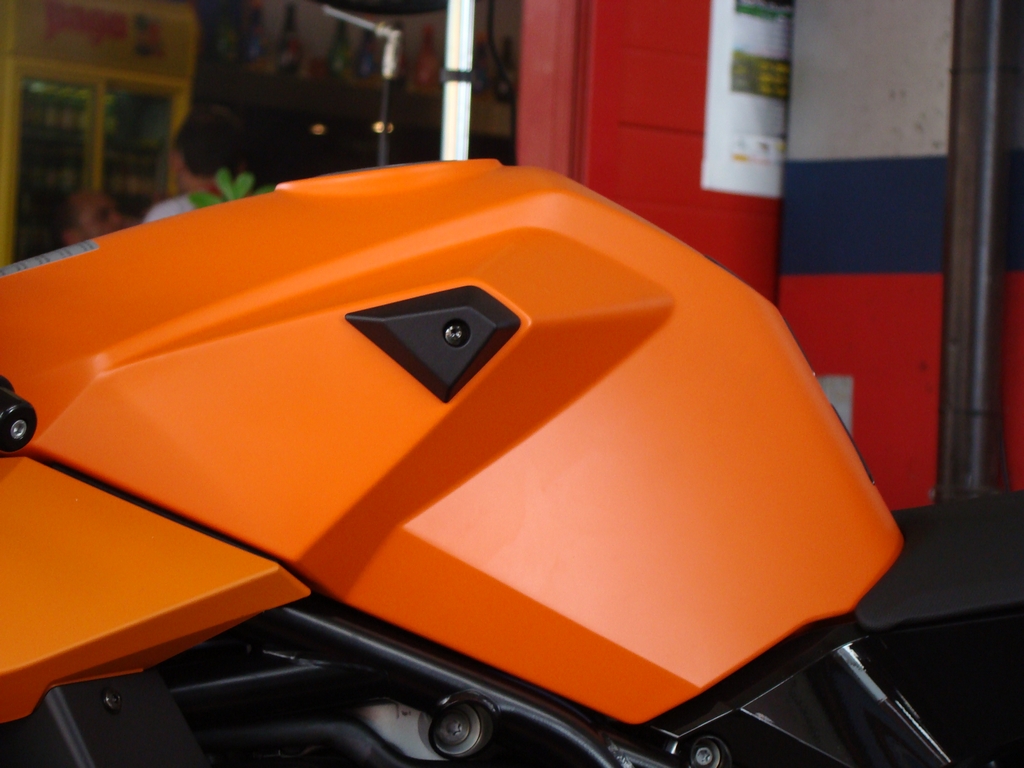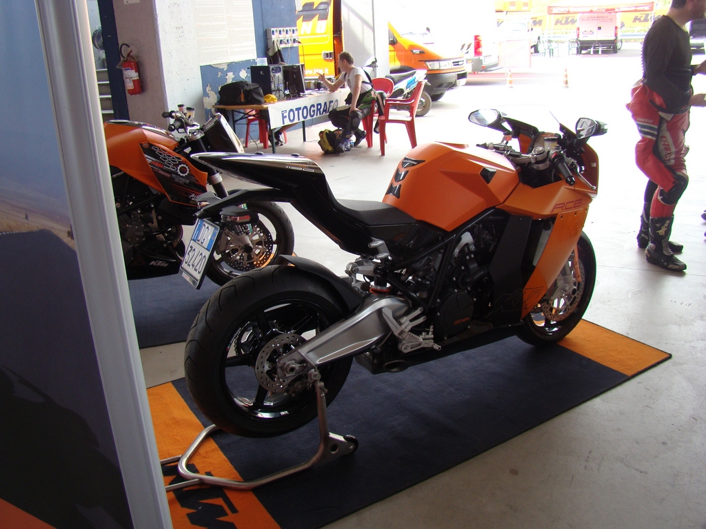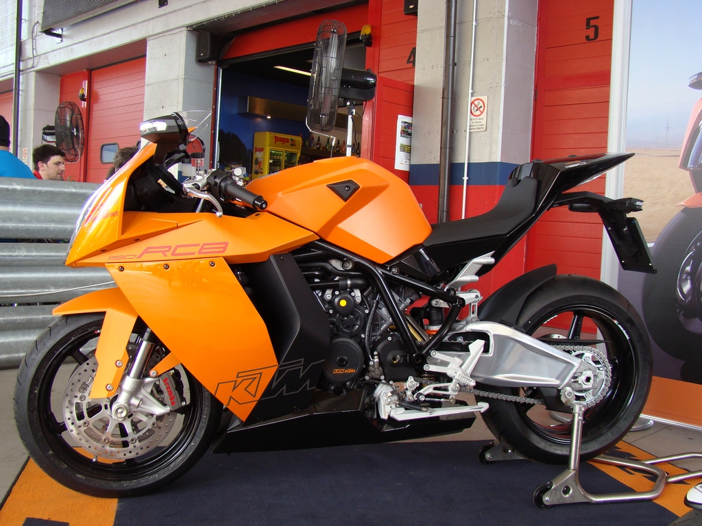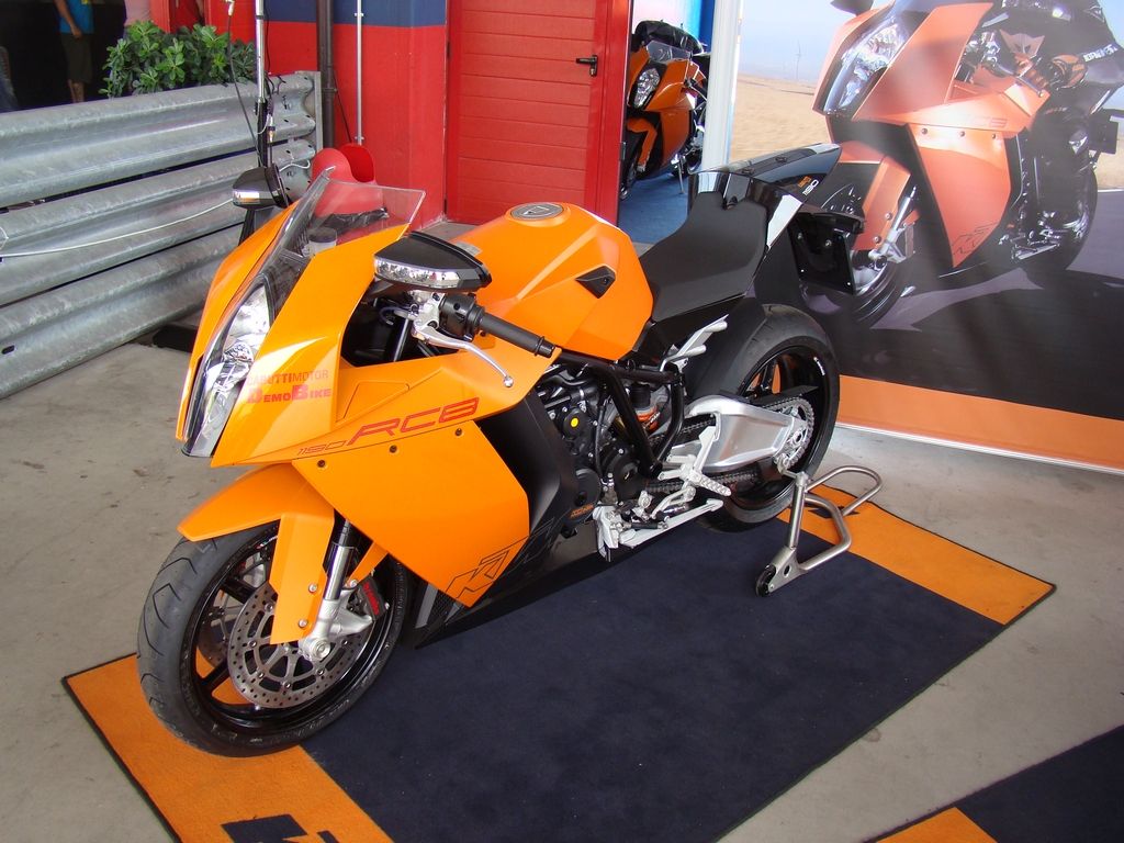 Tagli netti, e design davvero accattivante. Non son ammesse vie di mezzo. O l'amore o l'odio per la supersportiva austriaca. Dal vivo è impossibile non esserne catturati. Dev'essere una sorta di magnetismo che ti porta a concentrarti su ogni suo più piccolo particolare. Figlia dell'era moderna e di un coraggioso designer sembra non affascinare come un'opera di Tamburini, ma di certa non stanca al secondo sguardo. Il codino lascia davvero a bocca aperta. Rastremato verso l'alto, come a sfuggire, con un faro a led incastonato e la sensazione della sua snellezza, accentuata dallo scarico che non c'è nelle immediate vicinanze. La vista laterale è ricca di tanti particolari, come le pedane regolabili, le carene liscie, il forcellone che sembra un'opera d'arte, cerchi marchesini, impianto brembo; insomma ogni sguardo da sensazione di soddisfacimento. Il telaio a traliccio ingabbia il bicilindrico e sopra il serbatoio dalla forma inusuale. Il cupolino pare un pò troppo grosso, anche a causa della sua forma sviluppata in altezza e larghezza, ma in ogni caso romane inconfondibile, con le due bocche, che corrono accanto al faro, che portano più aria che possono all'affamato bicilindrico. Colori disponibili Arancio e Nero, Bianco e Nero.